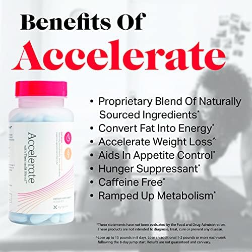 HOW CAN ACCELERATE WORK FOR ME? No other fat-burning supplement delivers results as quickly and efficiently as Accelerate. Its powerful ingredients deliver multiple benefits that are critical to losing weight: improve metabolism, metabolism support, increase fat burn for faster metabolism, hunger suppressant, calorie burner, caffeine free metabolism booster, rapid weight loss, rapid fat burner, and more! Accelerates thermogenesis and without the use of stimulants!