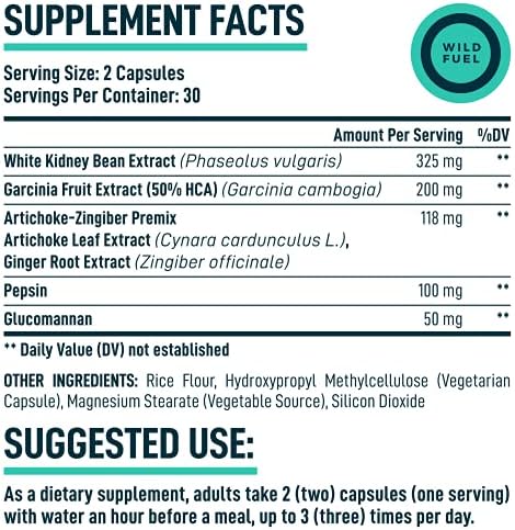 White Kidney (Phaseolus vulgaris) Bean Extract 325mg, Garcinia (Garcinia cambogia) Fruit (50% HCA) Extract 200mg, Artichoke-Zingibe Premix [31% Artichoke (Cynara cardunculus L.) Leaf 118mg * Extract, 7% Zingiber (Zingiber official Rosc.) Extract] (ProdigestTM), Pepsin 100mg. Other Ingredients: Rice Powder, Hydroxypropyl Methylcellulose (Vegetarian Capsule), Magnesium Stearate (vegetable source), Silicon Dioxide