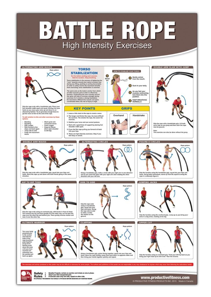 Battle Rope Poster/Chart: High Intensity Training – Battle Rope – HIIT – HIT – Rope Exercises – Fast Fat loss – Intense workout – … Rope – High Intensity Interval Training