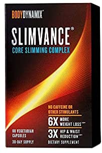BodyDynamix Slimvance Core Slimming Complex Stimulant Free: Clinically Shown To Help You Lose Weight and Inches ^◊*. Developed after years of scientific research, Slimvance is a patented, herbal blend that promotes weight loss^◊*. It’s proven to help people shed pounds and inches from problem core areas^◊*. 6X More Weight Loss Without Using Stimulants^◊*. Transformational weight loss isn’t something you need to wait for. Start achieving the results you’re looking for within only 16 weeks—and without the caffeine that’s in so many weight loss products^◊*. Target Your Hips and Waist^◊*. Reshaping your body—especially your midsection—can feel impossible for some people. Slimvance targets common trouble areas to help you lose 3X more inches from your hips and waist^◊*. Contains 60 vegetarian capsules No caffeine or other stimulants Gluten free ^A randomized clinical study of 140 healthy overweight people compared the use of Slimvance in conjunction with an 1800 calorie diet and walking plan to a placebo with the same diet and walking plan. Those on Slimvance lost almost 10 more pounds (-11.81 pounds vs. -1.91 pounds), lost over an inch more around the hips (-1.76 inches vs. -0.48 inches) and lost over an inch more around the waist (-2.12 inches vs. -0.68 inches) than the placebo group after 16 weeks. ◊Use in conjunction with the Slimvance diet and exercise program.
