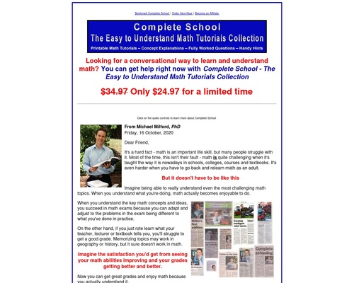 I will personally guarantee that Complete School – The Easy to Understand Math Tutorials Collection will make understanding math easier than you’ll find anywhere else and is the best value math aid you can buy.