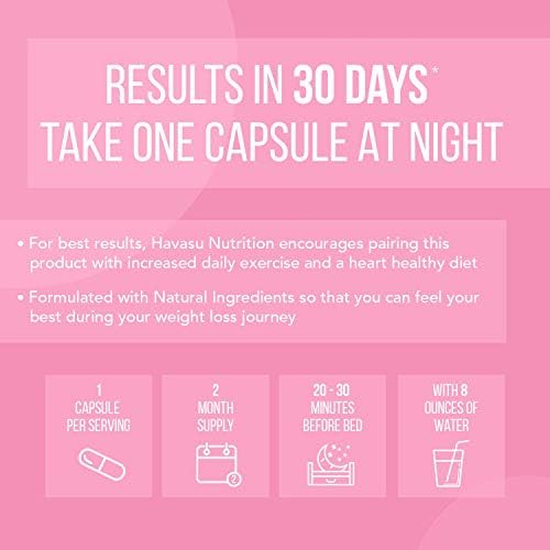 Havasu Nutrition Night Time Fat Burner for Women | Sleep Aid, Appetite Suppressant, and Metabolism Booster for Detox & Cleanse | Healthier Weight Loss | 60 Vegetarian Weight Loss Pills for Women