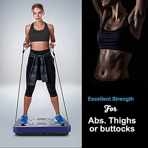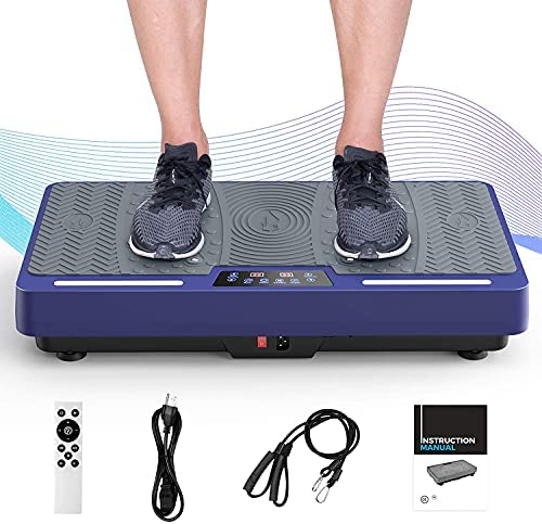 RINKMO Vibration Plate Exercise Machine, Whole Body Workout Vibration Fitness Platform with Loop Bands LED Light Speaker, Home Fitness Training Equipment for Weight Loss, White/Blue