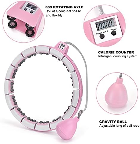 【Adjustable & Science Exercise】 Our weighted smart hoop is equipped with a gravity ball and 360 degree massage circle. The gravity ball is connected to a nylon rope, which is easier to generate centrifugal force and runs more smoothly. The intensity of exercise can be changed by adjusting the length of the rope.