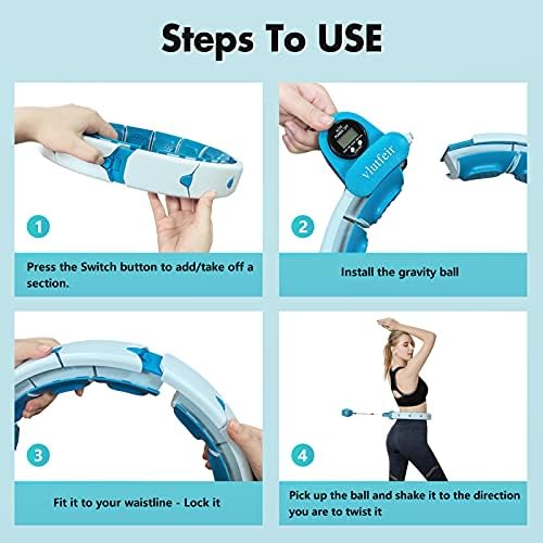 vlutfeir Smart Weighted Hula Hoop with Ball & Fitness Tracker & Massage, 3-in-1 Fitness Non-Fall Hoola Hoop for Adults&Kids Exercise,Adjustable Knots,3.3lbs Gravity Ball for Better Weight Loss