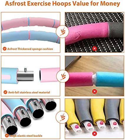 2021 Upgraded Exercise Hoop: Come with stainless steel inner support tube which is stronger than ordinary plastic hoop to aovid break and extend the hoops service life. Smooth thicked foam padded surface is more comfortable, which can protect beginners from waist injuries. Our workout hoops aimed to get better exercise experience and help fitness enthusiast improving figure shape.